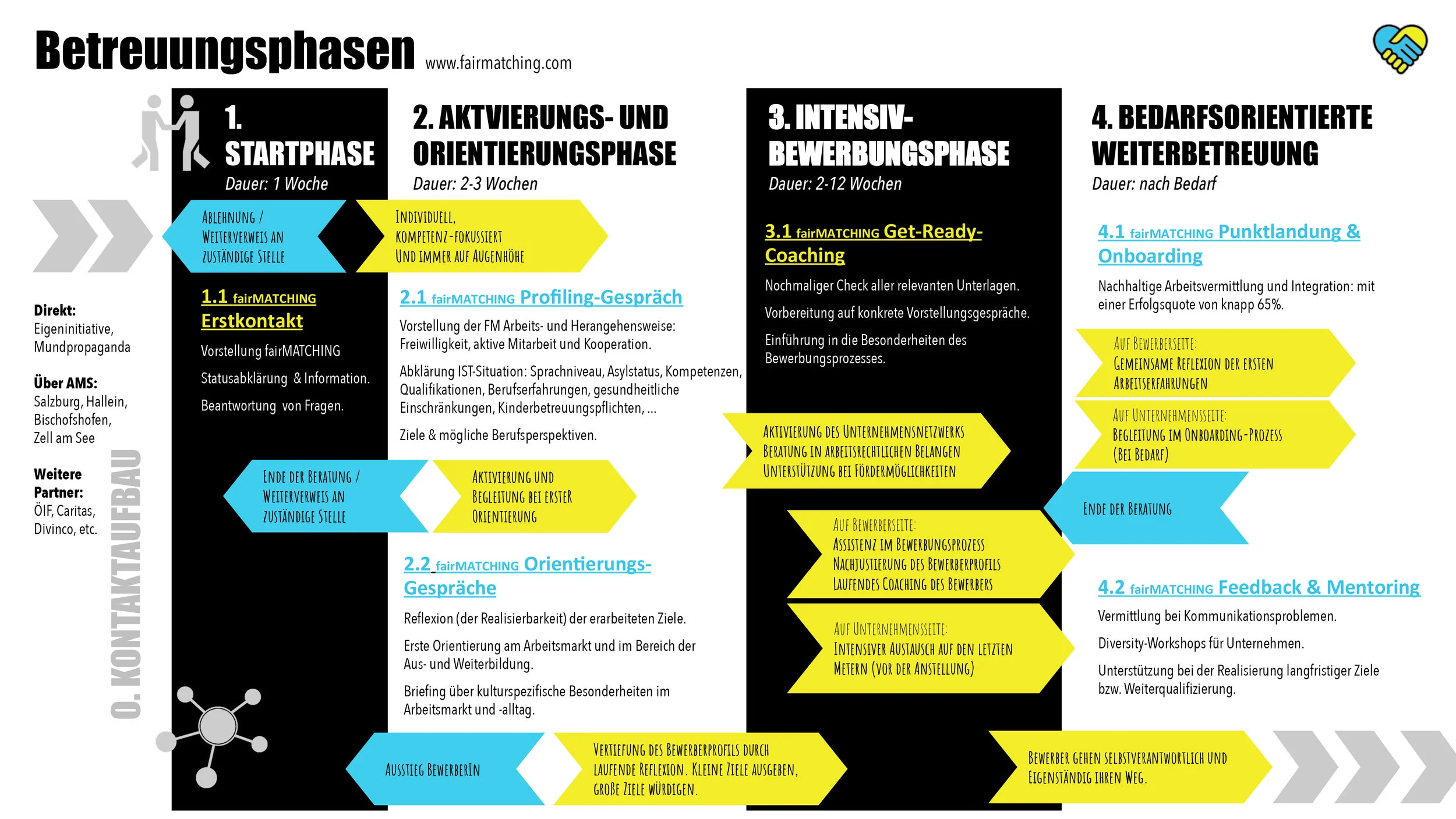 Wie maßgeschneidert der fairMATCHING-Prozess für die von uns betreute Zielgruppe ist, zeigen nicht nur die Zahlen, sondern auch die Mundpropaganda der von uns betreuten Menschen, die dafür sorgt, dass immer mehr Menschen an unsere Tür klopfen. „Seit ich in Österreich bin, habe ich das noch nicht erlebt, dass man so mit mir spricht“ – diesen Satz hören wir oft und bestätigt unsere Grundthese, dass Augenhöhe und Respekt ansteckend sind.